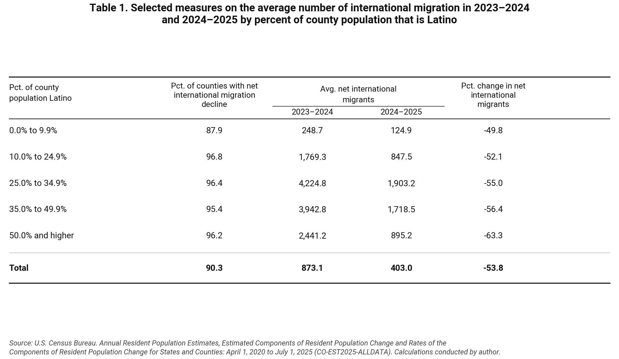 I based the net international migration data on the number of international migrants entering the country minus the number leaving it over a given period (e.g., June 1, 2024 to June 1, 2025). These numbers include U.S. citizens in the military migrating between nations and persons living in Puerto Rico migrating between the island and the mainland.