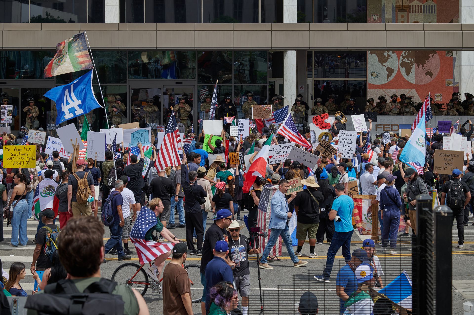 From one of the 2025 summer protests in downtown Los Angeles (Photo by Maks Ksenjak via L.A. Taco)